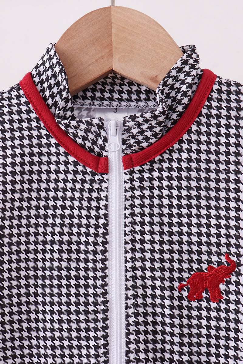Elevate your wardrobe with this striking black vest featuring an embroidered Alabama elephant—a bold statement piece that blends Southern charm with contemporary style. Perfect for layering over your favorite tee or dress shirt, this premium vest brings personality and flair to any outfit. Whether you're showing school spirit or just love eye-catching details, this versatile piece works for casual hangouts, game days, or whenever you want to add a touch of playful sophistication to your look.