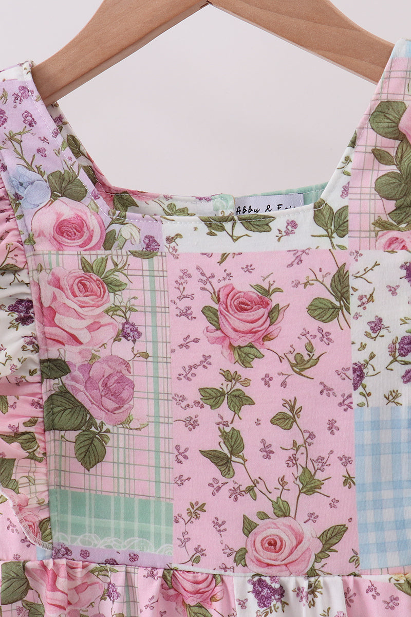 Purple floral checkered ruffle jumpsuit